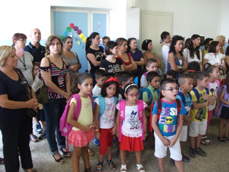 I piccoli alunni sono accolti dall'applauso e dai canti di
